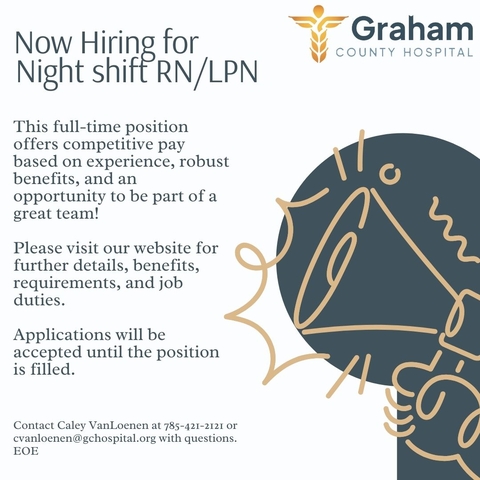 For more information about the position please contact Caley VanLoenen, HR, at 785-421-2121 ext. 1217 or cvanloenen@gchospital.org.