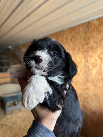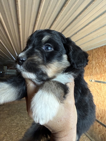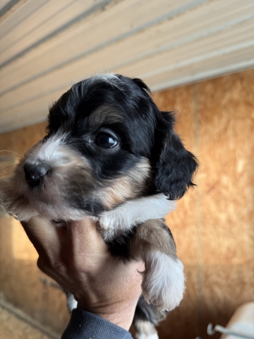 Minimal shedding with the intelligence and loyalty of mini poodle and mini Aussie. Mom is 15 pound poodle and dad is 25 pound blue merle mini aussie. Will have first round of puppy shots and wormer.
