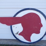 Antique handrail newel post. 9" x 4 1/4" diameter. 35 3/4" floor mount to top. 47" total height. Wood side is split out at bottom on longer side. Call 6206176644 - emails & texts are ignored as a scam.