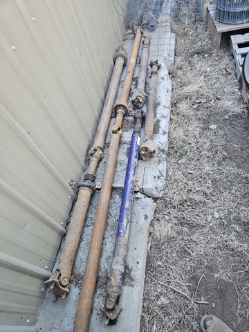 I have 2 pto shafts for sale. 2 are for 4 wheel drive on a 97 f350 that could be used for a pto shaft. Different lengths and diameters. 1 with carrier bearing that is pretty long. $75 apiece.