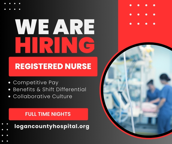 Logan County Hospital in Oakley, Kansas is seeking Night Shift Registered Nurses. This is a full time position. Join our team and receive newly increased wages and excellent benefits including night and weekend differential.
