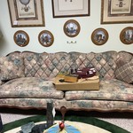 PLAID CHAIR WITH OTTOMAN. IN EXCELLENT CONDITION.
