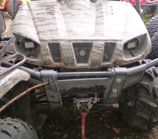 Yamaha Rhino 660 Camo great for hunting side by side, starts before you get your finger off the key once warmed up, 4x4, differential lock, fresh 686 top end with low miles, look close at those near brand new 28 inch tires, lift kit, stereo with overhead speakers, New this summer winch on front, 2" rear receiver hitch, dump bed.