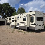 2020 crosswinds 26 ft long fifth wheel. Has one slide, outside fridge and stove, wine fridge, and camper fridge, electric awning, u shape dining table that folds into bed, love seat that folds into bed, and king size bed in front. Has 32 inch flat screen TV, in door and out door stereo, led lights under awning and steps, good quality steps to walk up and down on. Book value is $42,000