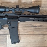Ruger AR 556. 10 rd and 30 round Magpul magazines. Also red/green dot sight and flip up front and rear sights.