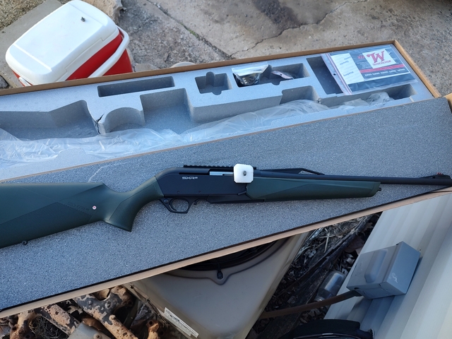 I'm selling a new in box 0 shots fired Winchester SXR2 stealth in 300 Win Mag. It has a 21" threaded barrel in a green polymer frame that has a fiber optic front site and built in pic rail. It also comes with sling mounts attached and has a 2+1 capacity from a removable magazine. It will come with the box, literature, and everything that came with it from the factory. I will consider reasonable trades and cash offers. OBO