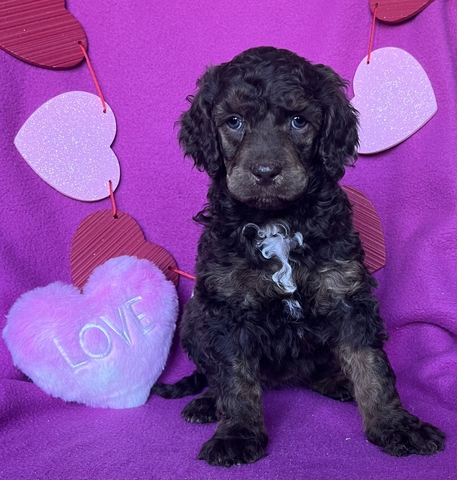 Akc standard poodle puppies born December 23rd, will be 8 weeks old February 17th Both parents are genetic tested clear. Puppies have natural tails and dewclaws intact. Will have vet check, 1st set of shots, microchipped and dewormed every 2 weeks. $1000 limited akc(pet only). Brown brindle female Akc standard poodle studs