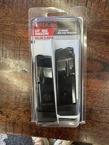 This is a factory 2-pack of the Ruger LCP MAX 12-round magazine, chambered in .380 ACP.