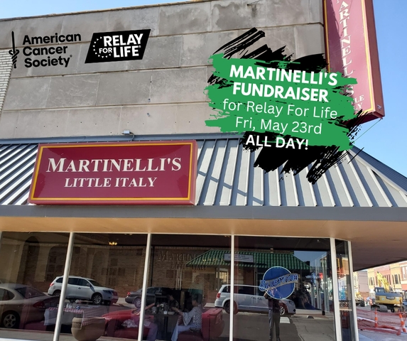 FRIDAY, MAY 23RD (ALL DAY) - MARTINELLI'S FUNDRAISER FOR RELAY FOR LIFE!