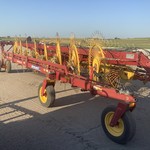 New Holland hay rake set with double hitch. 8.5' width working rakes. 259 & 260 Rolabar rakes with all good teeth/tines, tires, hitch & jacks. Manual height adjustment. All in good condition.