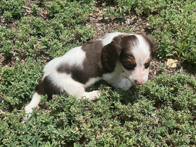 Male mini dachshund puppy available in morthwest Kansas or can possibly meet. Beautifully marked, has a kink in his tail. Current on vaccinations, dewormed and ready to go to a new home next week (after 7/29)! Call Keri 785-626-4160.