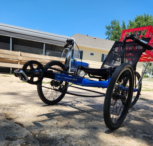 Very nice barely used Sunseeker Eco-Tad-SX Recumbent 7 speed Trike. Very comfortable and easy to get in and out of. Works and rides well. Seat and pedals are Adjustable to different size individuals. Like new!