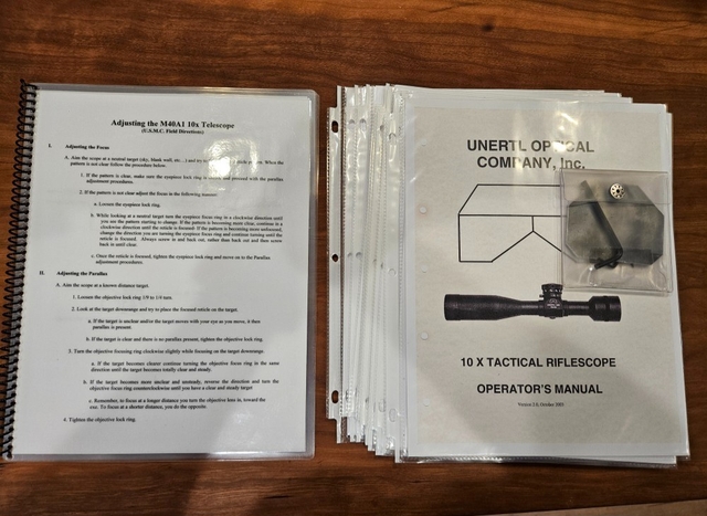 The Unertl Scope Mount has caps with screws and 4 mounting screws. This is definitly the hardest part to find for a true M40A1 build. I haven't seen one of these for sale in a long time. This mount was on a M40A1 that I previously listed here. I am keeping rifle due to non-paying buyer. The Unertl 10x Sniper scope is likewise in an excellent condition, very clean too. There are very few original and unpainted Unertl 10x left and rarely come up for sale. Like I said it a sweet deal. Feel free to make more enquiries boltnturner@gmail.com.
