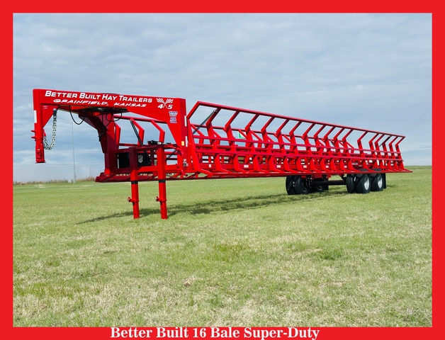 Unique, superior features of Better Built Hay Trailers include a front-mounted trigger jack conveniently located for the driver and 2"x4" box tube-constructed cradles for extreme durability. Better Built Trailers exclusive latch has never bent or failed, and our gooseneck is the strongest in the business, with a 4"x8" box tubing, 1/4" wall construction.