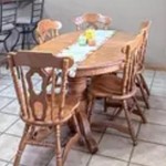 Oval dining table with Formica top. Four chairs. Solid and sturdy. Great for small spaces $95