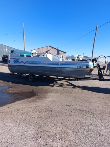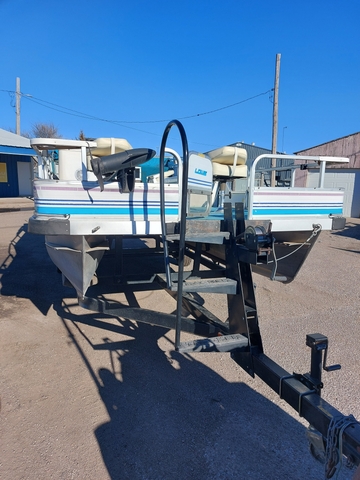 This is a 1998 20' Lowe 221 fish & fun pontoon with 90hp 2 stroke outboard and custom tracker trailer. The boat has the following equipment bimini sun top, minnkota 12v 50lb thrust trolling motor, hummingbird fish locator, livewell, new Bluetooth fm stereo, rear entry ladder, built in fuel tank, pedestal fishing seats and couches, anchor and full instrumentation. The motor has just been tuned up with new carburator kits, spark plugs, new fuel pump and hoses, lower unit resealed oil serviced and new waterpump impeller. Installed new steering system, led bow lights. Has plenty of power to pull water towables. Ready to hit the water. You can reach me directly at 785-737-3460