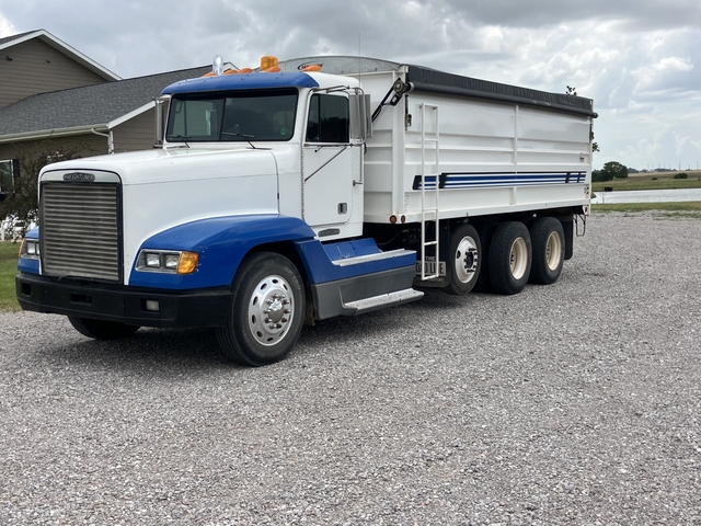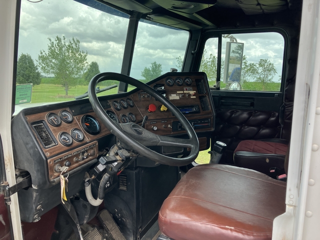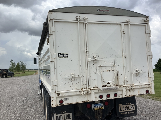 Nice grain truck with load line grain bed. 20'x8'x63" bed holds 700 bushels. Plumbed for grain auger and comes with the auger if wanted. N-350 Cummins motor with Eaton-fuller 9 speed. New brakes installed. Has electric tarp. New canvas 163,000 miles. 316-77two-114six
