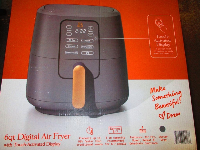 New 6 qt capacity Beautiful brand (Walmart) air fryer by Drew Barrymore.