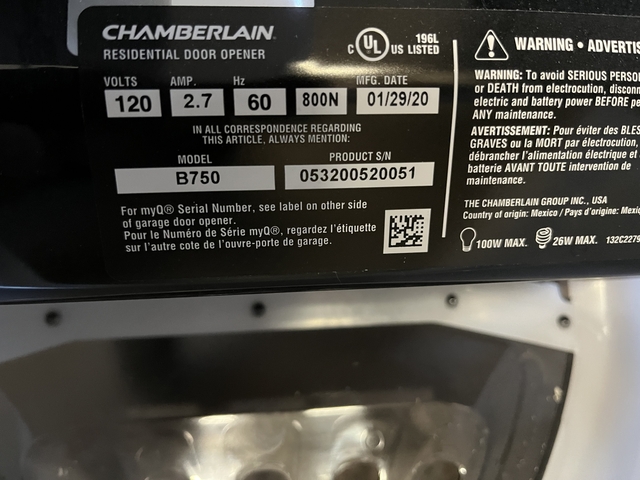 Chamberlain 3/4 Smart Quiet Belt Drive Garage Door Opener. Smart Hone control with my Q app