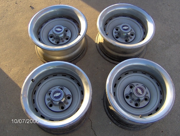 Nice set of pickup rally wheels 8-inch, 5x5 with rings and caps.