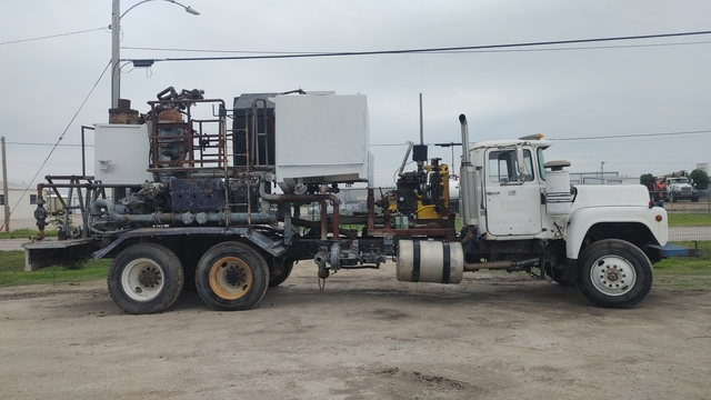 SERVA TPB600 Triplex Pump with 4 1/12" Plungers, rated at 62 GPM @ 6667 PSI @ 50 RPM to 605 GPM @1530 PSI @ 488 RPM. Pump comes with a 500hp drop box and a cementing/acidizing bed. The truck had a cab fire, originally was a 2009 Kenworth with 500hp Cat Engine.