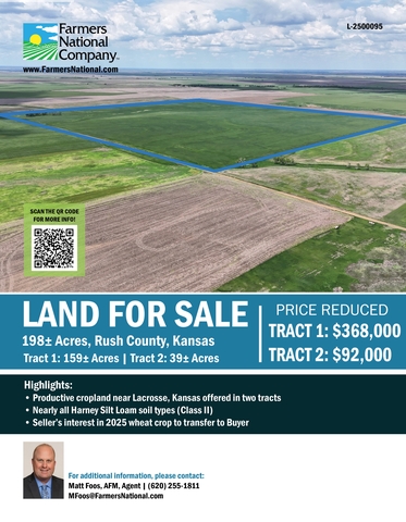 W/2E/2NW/4 of Section 4-17S-17W-From Lacrosse, KS 4 miles east on Hwy 4; 5 miles north on CR 290 and 1.25 miles east on Avenue G. (Tract #2 Still Available)