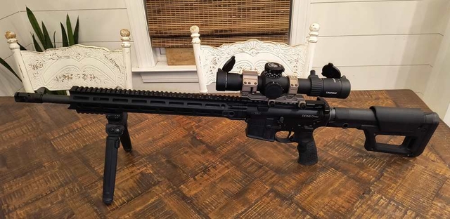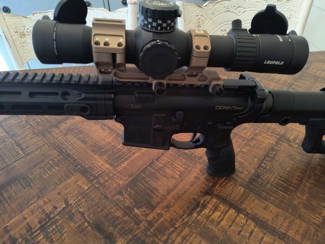 Very lightly used Daniel Defense DDM4 V7 Pro Rifle. I set this rifle up with the intentions to shoot some DMR matches my schedule hasn't worked out for it. It comes with a Leupold Mark 5 HD 2-10x30 scope with the PR1 Moa reticle. It is mounted in a Badger Ordnance Condition One mount with a1.54" ring height. I have added the accessory ring cap (arc) to the scope mount as well so it ready for your choice of red dot sights. Rifle has an SSA-E two stage trigger added as well as a Magpul PRS lite stock. Listing will include a Magpul bipod and a 30rd pmag as well. Complete set up ready to go. Rifle only has about 40-50 rounds through it.