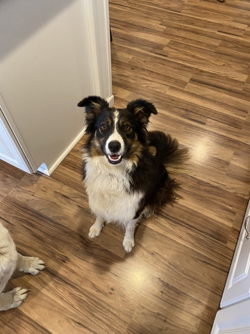 3/4 Australian Shepherd 1/4 Border Collie, 1 Black-Tri Male left and is ready to go! He has been introduced to cats, chickens, cattle and horses. He has his 1st & 2nd round of shots but will need his rabies. The last 2 pictures on here are the mom and dad.