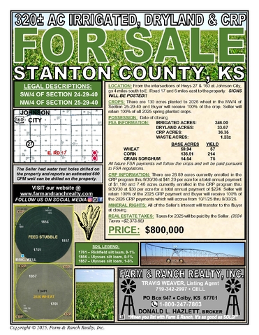 320± ACRES IRRIGATED, DRYLAND & CRP - STANTON COUNTY, KANSAS