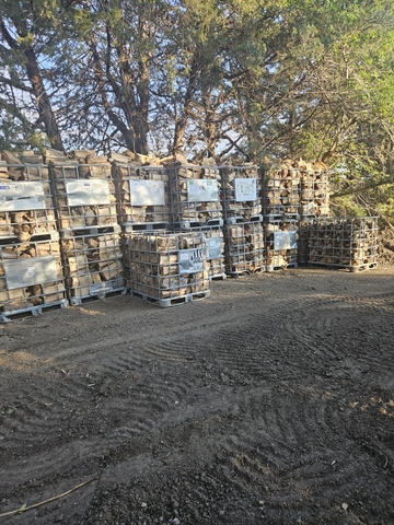 A level tote is approximately 39 cubic ft. So about 1/3 of a cord. The totes are a little over the top. If you want it left in the tote I will need a $25 deposit. Thank you