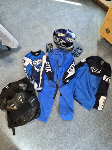 All items are like new and used a handful of times. The jersey that matches the pants is a youth XL (12-14) boys the pants are Youth XL (12-14), the chest protector is youth large. The extra shirt I threw in is a youth large, gloves are small, Helmet XL 55-56.