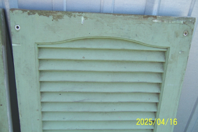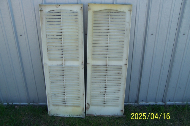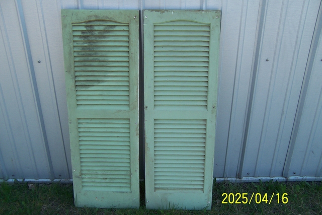 Used pair of window shutters. 14 3/4" wide x 43" tall. Call 6206176644 - emails & texts are usually ignored as a scam.
