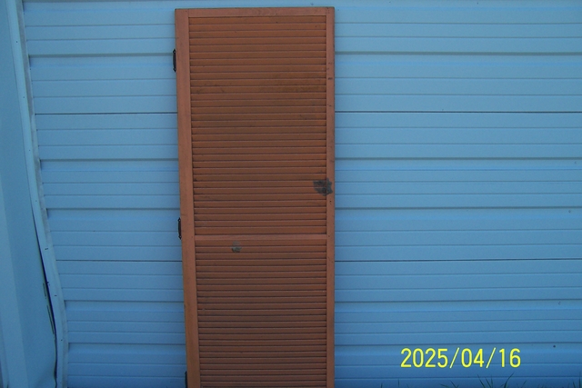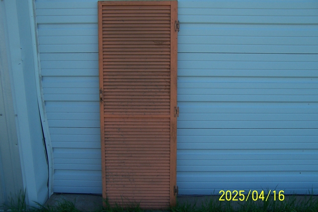 Old wood pantry / closet door with hinges and handle. 23 1/4" wide x 64 1/4" tall. Call 6206176644 - emails & texts are usually ignored as a scam.