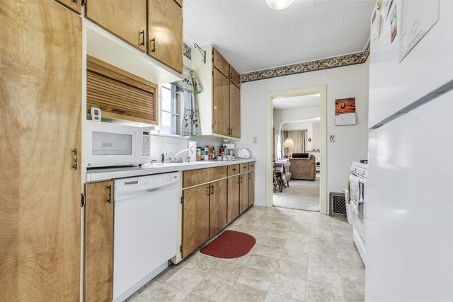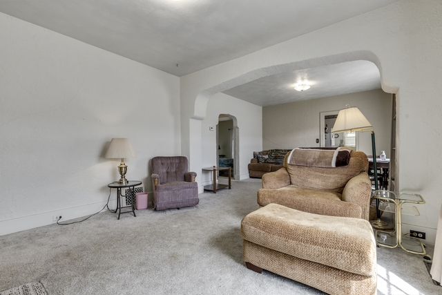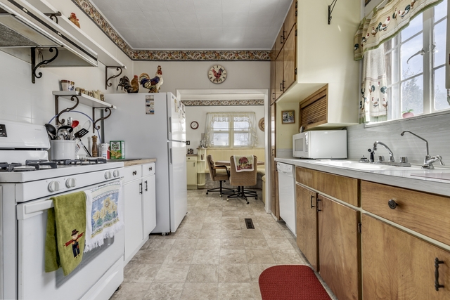 The main floor of this fixer-upper home is livable, comfortable and homey. The electrical has been partially updated and there is an electric fireplace and the possibility of hardwood under the carpet. It has a fully functioning kitchen. The home has original metal-paned windows in the living room which allow abundant light. The kitchen includes all appliances including gas range, refrigerator, dishwasher, double sink, and garbage disposal.