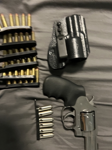 This is a Colt King Cobra in .357. Beautiful gun comes with the box, holster, and a box of 125gr XTP ammo, half of which is loaded on speed strips. Also included is a set of very nice inert snap caps to keep your firing pin in top notch shape.