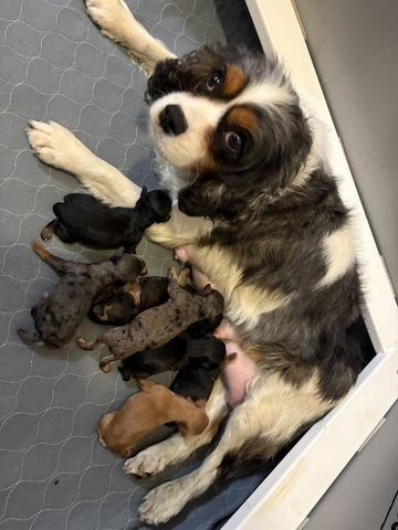 Ready for new homes, 2/09/26, will be 12-25 lbs as adults. Mom is Cavalier, Dad is toy poodle.