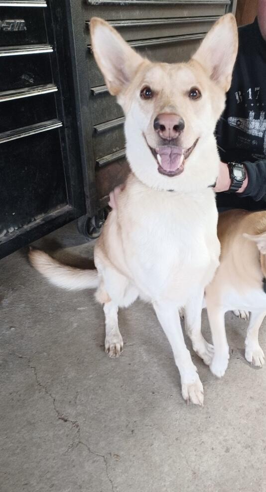 Roughly 3 year old female spayed German Shepard. UTD on all vaccines including kennel cough. She is very energetic and great with kids, other dogs and cats.