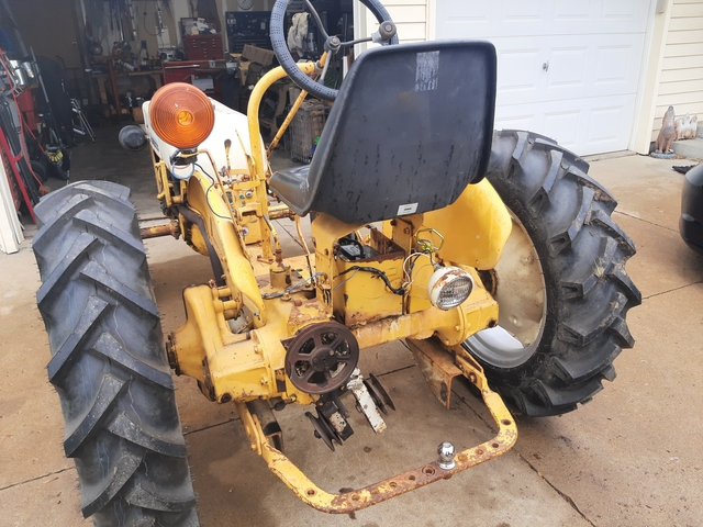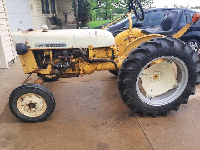 This is a good running and easy starting cub lo-boy, it comes with new rear tires, decent front tires, and a 5 ft or 60 inch belly mower three blades finish style and a draw bar. I do not have the belts for the mower but it is in good condition.