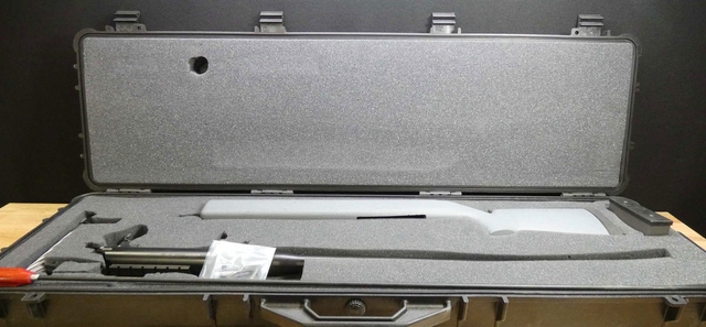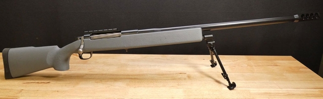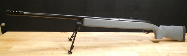 This is A state-of-the-art, super-accurate .50 caliber rifle with a muzzle break that is smaller and more efficient than any currently on the market. ACTION: Precision CNC machined custom action. BARREL: chrome-molly match grade barrel. Includes match chamber and crown. STOCK: Ambidextrous fiberglass/composite stock with aluminum pillars and steel epoxy bedding, Pachmayr Decelerator recoil pad, Parker Hale bipod stud, and free-floated barrel chamber.