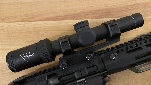 Trijicon Credo 1-6x24 SFP. Illuminated .223 55gr FMJ BDC reticle. Brownells/Warne 1.53” cantilever mount