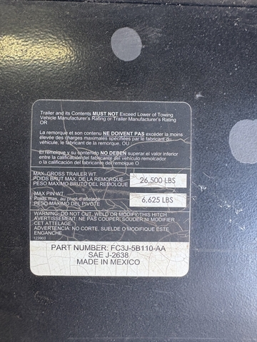 5th wheel that fits 2011-2024 Ford F250/350 with long or short bed. Rated at 26.5K. Have added the polyurethane plate protector.