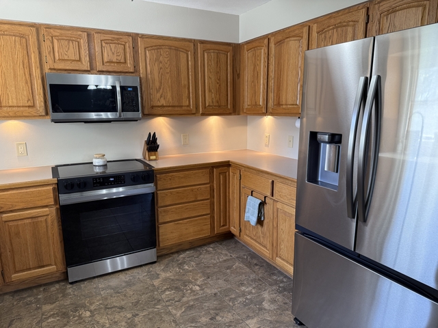 Brick ranch on corner lot. Attractive floorplan with family room off kitchen/dining area. 4 bedrooms, two baths, 2 car garage plus bonus 3rd garage. Well landscaped yard, covered patio and much more. Contact Molly (BigIron Realty) for viewing or for more information. 785 462-5203