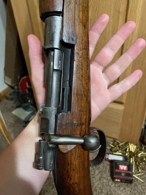 This is a pre WWI era made m1893 cock on close mauser rifle made for the Ottoman Empire. They were used in WWI and later went through a re-chambering to 8mm mauser by Turkey starting in 1933. This one has a very nice bore and matching receiver to the barrel and sights. The bolt in this rifle has not been bent in America for sporterization, I believe the bolt is turned down because it is a carbine version bolt. This change does not impact function of the rifle.