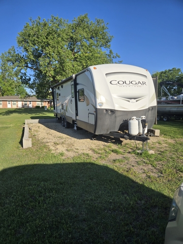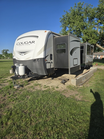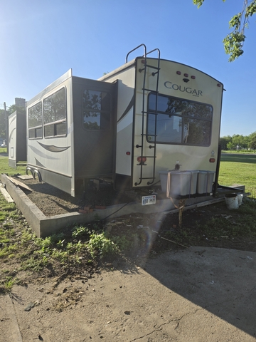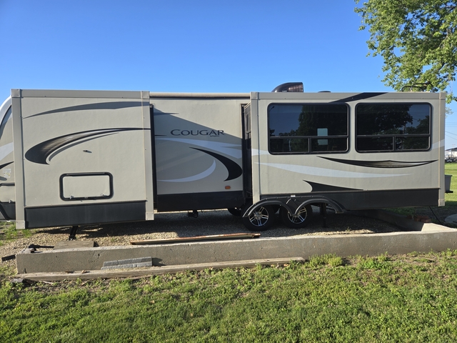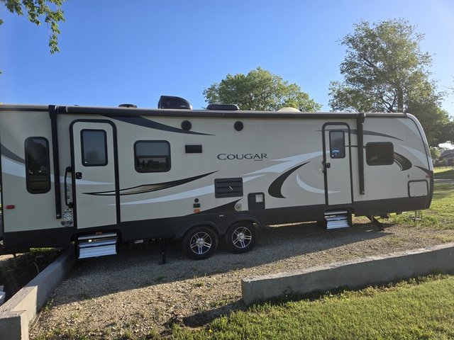 38ft. Bumper Hitch--Sway Bar Hitch Included. Also includes heavy steps on both entries. 2 slides. Electric awning (no tears noted). Electric fridge/freezer with gas backup. Gas water heater. Gas stove. Electric leveling. TV/DVD/Stereo system plays through speakers inside or outside or both at the same time. Couch pulls out for extra sleeping. Queen bed in master also has large storage underneath. Large closet and chest of drawers with cabinets above as well. Table with 4 chairs and recliner. Lots of storage! AC/Heat work great. Never had any leaks.