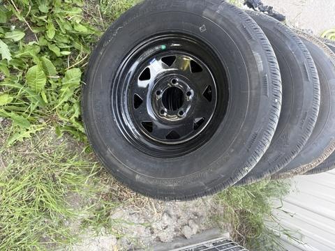 4 new tires with wheels trailer 8 ply come of my camper they pulled from great bend to jetmore they are 5 lug on 4.5 $100. Each or best offers