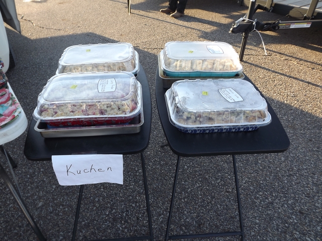 Kuchen and Spitzbuben will be sold at the Farmers Market at Bomgaars. Kuchen flavors are Blueberry, cherry, peach, and apple.