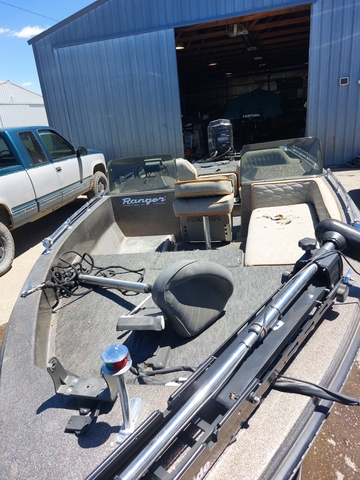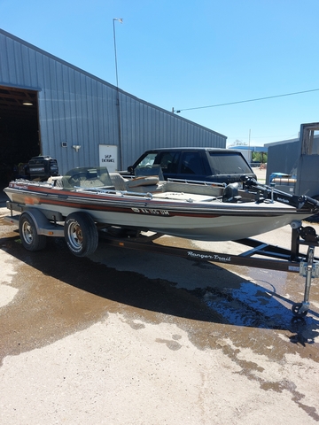 This is a 1985 18' Ranger 373V fiberglass bass boat with 150hp xr2 Mercury and custom trailer. The boat has the following equipment livewells, pedestal fishing seats, rod locker, dry storage, trim and tilt, load guides, spare tire, stainless steel propeller, fish locator and full instrumentation. Motor has been checked out and runs great. The boat has a few ruff spots on the seats but everything else is in good shape and ready for the water. You can reach me directly at 785-737-3460.