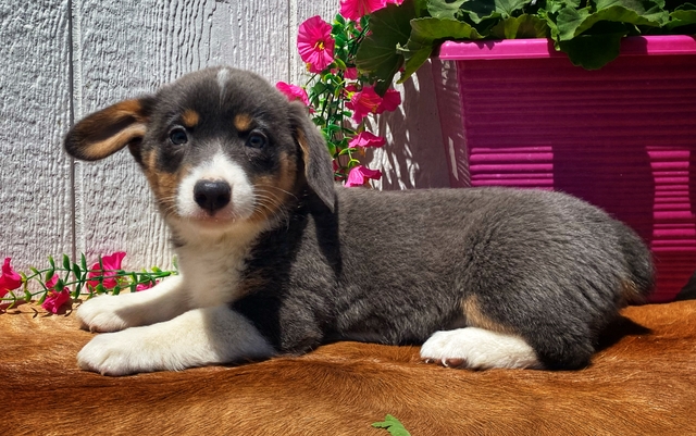 Auggie litter born March 15th, weaned & ready to go.Tails docked, dewclaws removed, first vaccination & dewormings.Sire: Garth, Bluie tri 3/4 corgi, 1/4 mini AussieDam: Heifer, blue merle 1/2 corgi, 1/2 mini Aussie