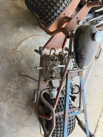 Mini bike for adult/big kids project. I need the room and need to sell this. Brand new 13HP predator engine (250$). Also has a header installed and hi flow air filter. Need a clutch, brakes, seat and handlebar to finish. These are rare and this one will be a bad sob.