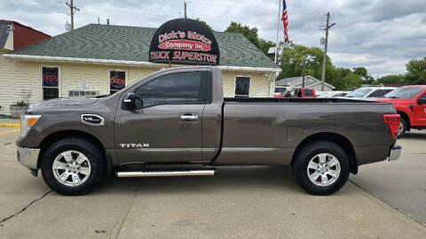 2017 NISSAN TITAN R/CAB SV 8.2 FT LB 4WD 5.6L V8 - PWR WINDOWS - LOCKS - CRUISE - CLIMATE CONTROL - SIRIUSXM RADIO -PREMIUM STEREO - BACKUP CAMERA - BLUETOOTH - PWR HEATED MIRRORS - SLIDING REAR WINDOW - SPLASH GUARDS - RUNNING BOARDS - NEW TIRES -ALLOY WHEELS -TOW PKG ! STOP BY, OR CALL 308-384-2554 ASK FOR DAN ! SALE PRICE $22,899 50K MILES ! Visit our website dicksmotorcompany.com